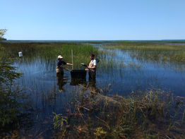 Methane bubbling out of Phragmites marsh. Lake Huron, MI